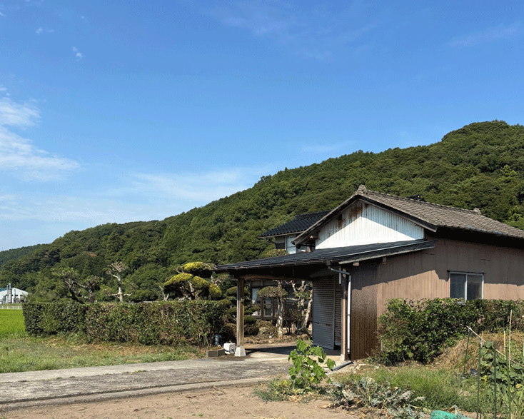 玄関前の大きな木と家屋横の木の伐採。